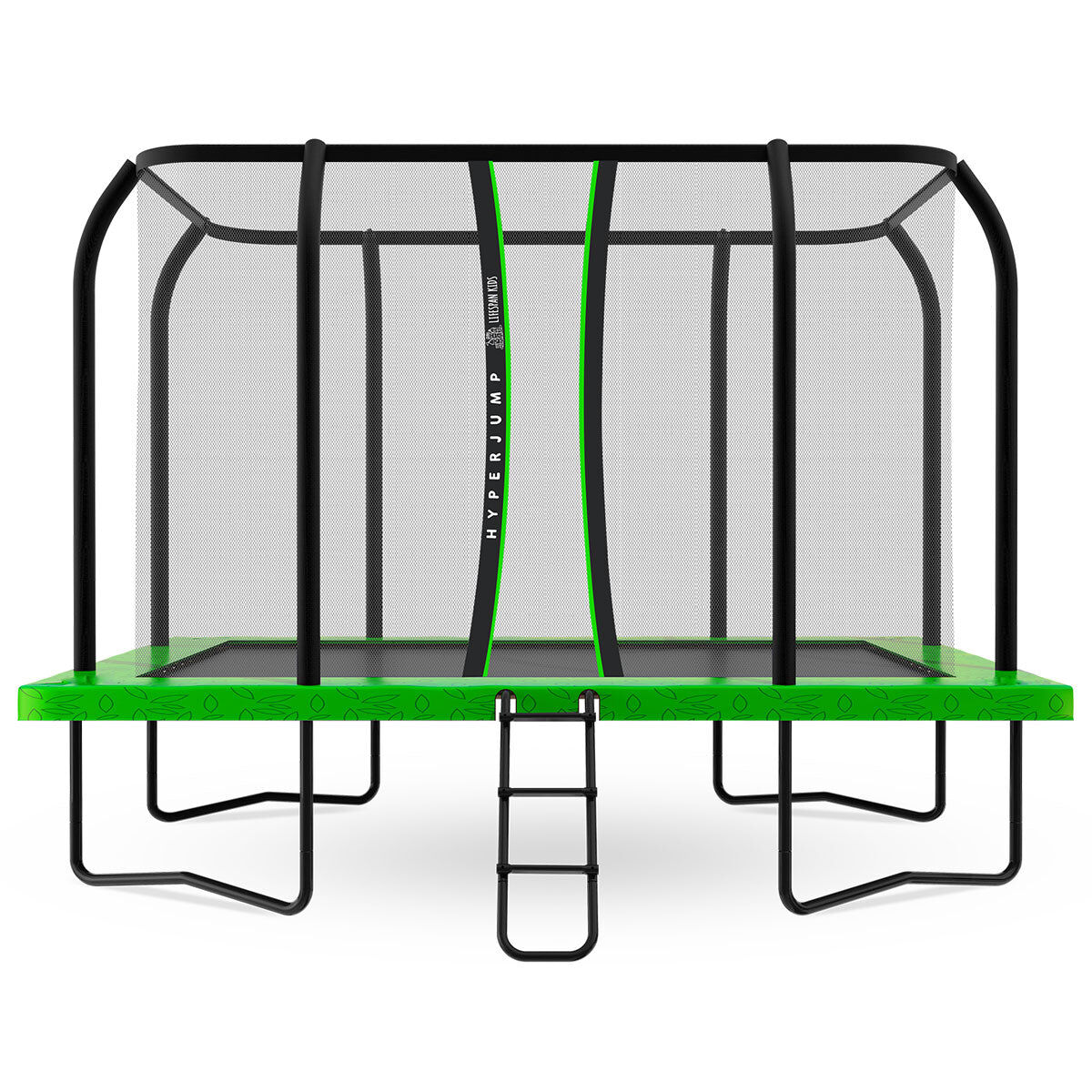 $1,203.64Take your bounces to new heights with the 12ft x 8ft Hyperjump R Spring Rectangular Trampoline. Our spring design will give little ones the bounce they need to jump, flip and tumble all day. The long jumping area is perfect for mastering tricks and a great option for space conscious yards. With excellent safety features including the safety net and padded poles, the HyperJump R is bound to bring laughter and fun to any backyard.