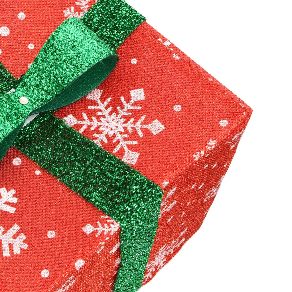 $55.79Decorate your space with these lighted Christmas boxes in the coming Christmas. 8 lighting modes: The lighted up Christmas present has 8 different lighting effects (combination, in wave, sequential, slow glow, chasing/running water, slow fade, twinkle/flash and steady on), you can switch the lighting modes by pressing the button on the USB to create different holiday atmospheres.Set of 3 boxes: The set consists of 3 Christmas boxes in different sizes. Each box is tied with a cute bow on the top, making it look just like a real gift box.64 LED lights: The 3-piece light up present box set comes with 64 energy-saving LED lights in total that shine from the interior and reflect their warm white light through the colourful shell.Versatile display: The light up Christmas box makes a great addition under the Christmas tree, blending nicely with the other gifts and decorations. Also, it can be used as decoration in your living room, office, apartment, workshop, restaurant and more. Good to know:The product has a USB connector, but the certified 5V USB power source is not included.