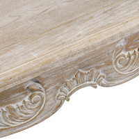 Lille dining table exudes vintage look with its design and colour. White washed finish on the dining table presents a timeless look that will stand out in any living room. The top of the table is enough spacious to meet your need.