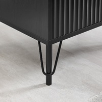 Materials: Particle board melamine body, MDF painted drawer front, Powder coating metal legs