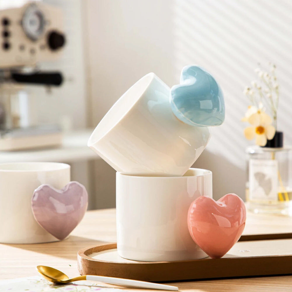 Lovely 3D Heart Love Ceramic Cup Mug Puffy Heart Handle with Gift Box (Purple)