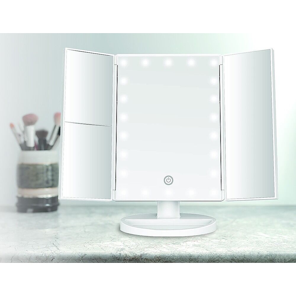 Its trifold design allows you to see yourself from a variety of angles, while its 180-degree swivel lets you adjust it for precise comfort. It comes with a detachable storage tray for your makeup to keep everything you need in one place. With your choice of both battery or USB power, you can take this mirror along with you wherever you go. Get yours today and get that model look!