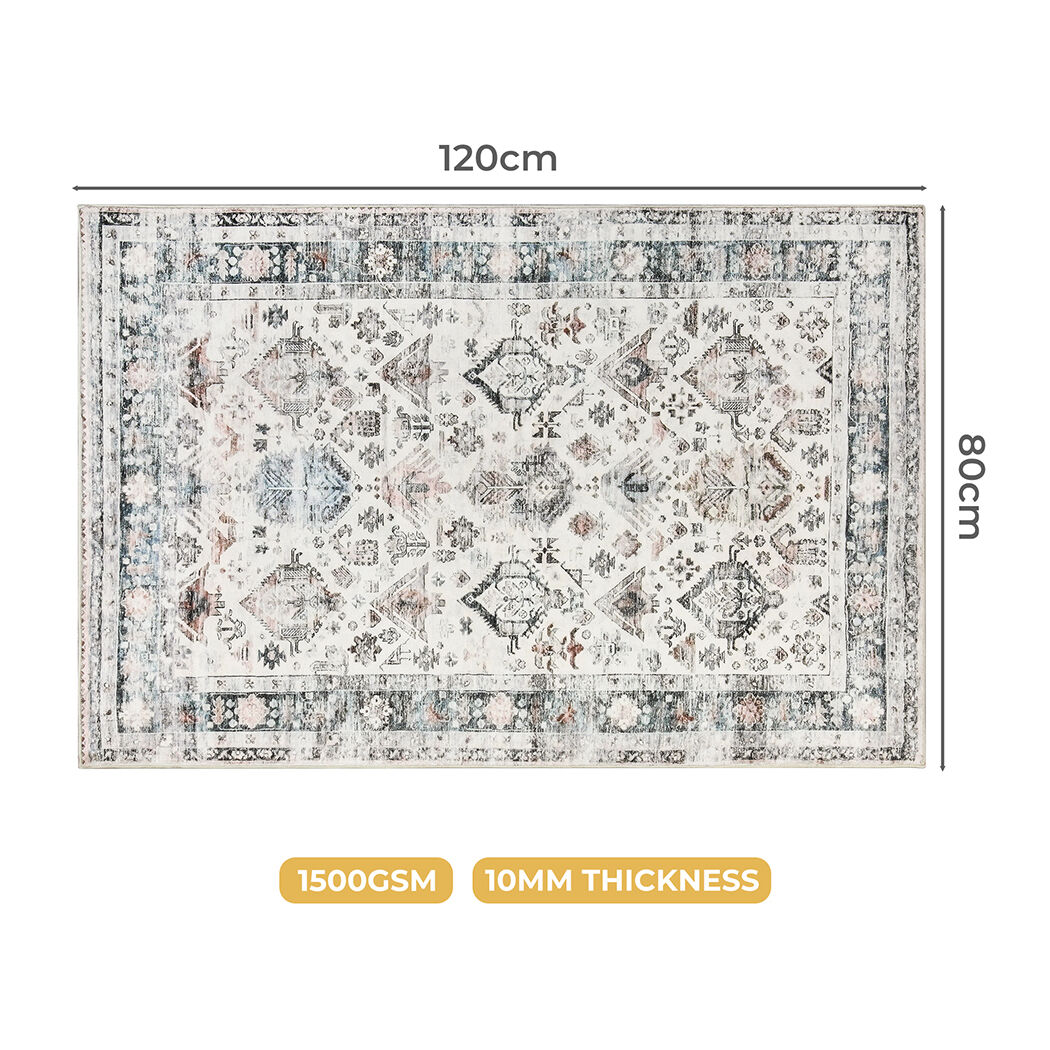 Floor Rug Vintage Short Pile Washable Carpet Soft Plush Non Slip 80X120 - Model-CE35BD