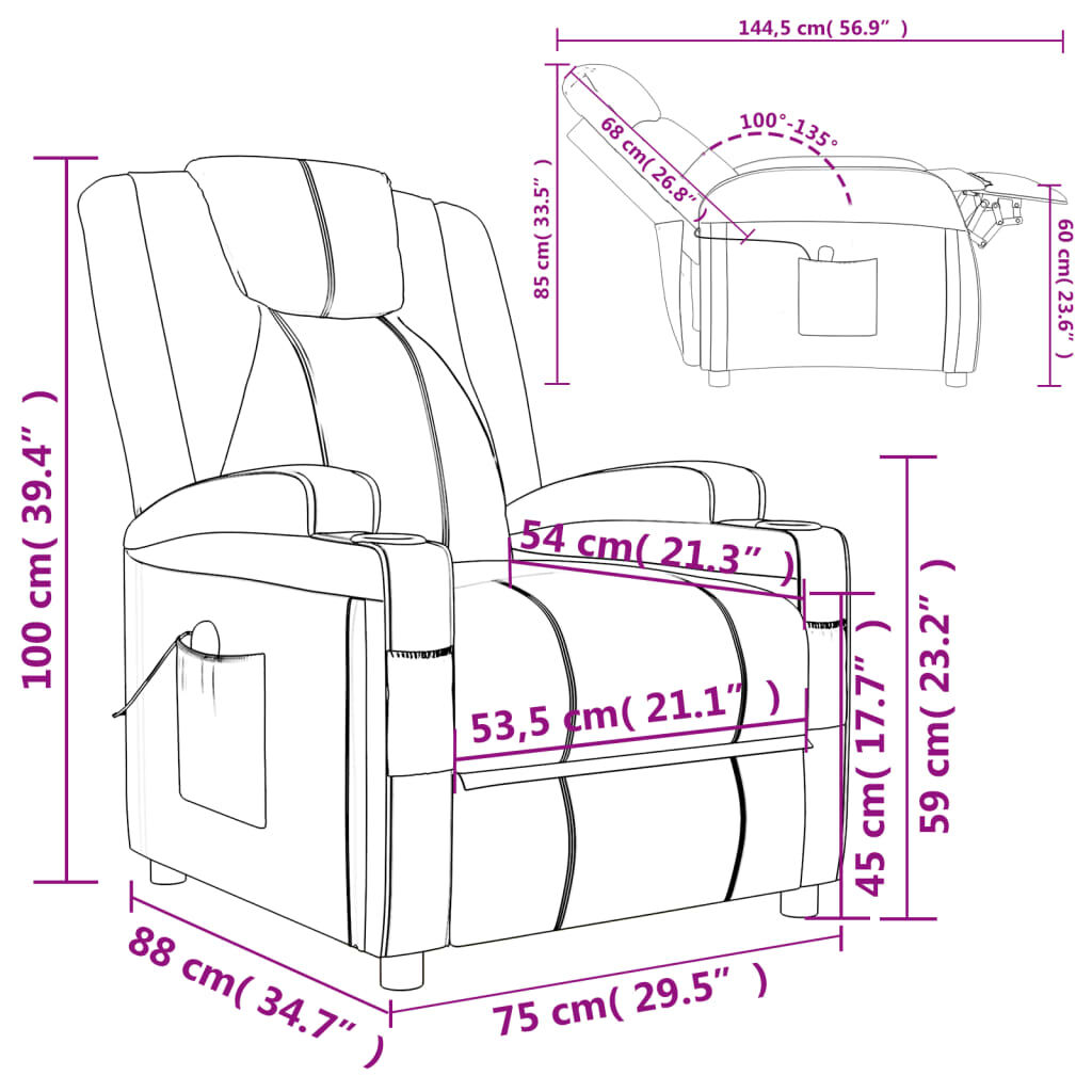 $352.79Sit back and drift away in this highly comfortable massage chair! Manual reclining function: The reclining chair is specially designed with 3 reclining positions so that you can adjust the backrest and footrest manually as per your comfort.Vibration function: The featured 6 massage points let you experience a better-targeted massage. Additionally, the included hand control allows you to pick different massage programs. The massage function is powered by the USB connector, but the certified 5V USB power source is not included.Comfortable seat experience: The thickly padded seat, backrest, and wide armrests covered in faux leather provide a cosy and warm sensation, making you feel embraced while seated. The faux leather is a highly durable material. It is resistant to stain, making it easy to clean with a damp cloth. The smooth surface also gives a luxurious look and the beauty of real leather.Solid and stable frame: The frame made of wood and metal provides a strong structure and stability. This reclining armchair is comfortable and durable.