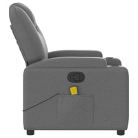 Sit back and drift away in this highly comfortable massage recliner chair! Manual reclining function: This reclining chair has a button on the right side. You can manually adjust the footrest and the backrest to any position as per your comfort with a simple pull of the handle. This feature allows for a maximum tilt of 135 degrees. Additionally, the backrest can go quickly back to the original place with an easy pull of the handle.Vibration function: The featured 6 massage points let you experience a better-targeted massage. Additionally, the included hand control allows you to pick different massage programs. The massage function is powered by the USB connector, but the certified 5V USB power source is not included.Comfortable seat experience: The thickly padded seat, backrest, and wide armrests covered in fabric provide a cosy and warm sensation, making you feel embraced while seated. The fabric features a simple and clean look and is breathable and durable.Convenient cup holders and side pocket: This armchair has two convenient cup holders for your drinks and a side pocket for your remote control or keeping your essential items within easy reach.Solid and stable frame: The frame made of wood and metal provides a strong structure and stability. This reclining armchair is comfortable and durable.
