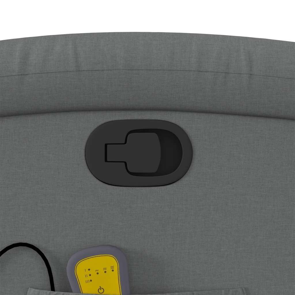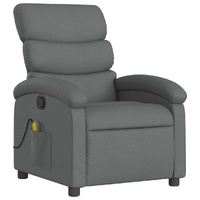 Sit back and drift away in this highly comfortable massage recliner chair! Manual reclining function: This reclining chair has a handle on the right side. You can manually adjust the footrest and the backrest to any position as per your comfort with a simple pull of the handle. This feature allows for a maximum tilt of 135 degrees. Additionally, the backrest can go quickly back to the original place with an easy pull of the handle.Vibration function: The featured 6 massage points let you experience a better-targeted massage. Additionally, the included hand control allows you to pick different massage programs. The massage function is powered by the USB connector, but the certified 5V USB power source is not included.Comfortable seat experience: The thickly padded seat, backrest, and wide armrests covered in fabric provide a cosy and warm sensation, making you feel embraced while seated. The fabric features a simple and clean look and is breathable and durable.Convenient side pocket: This armchair has a side pocket for your remote control or keeping your essential items within easy reach.Solid and stable frame: The frame made of wood and metal provides a strong structure and stability. This reclining armchair is comfortable and durable.