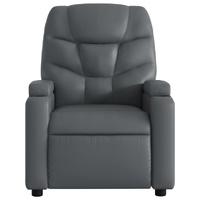 Sit back and drift away in this highly comfortable massage recliner chair! Manual reclining function: This reclining chair has a button on the right side. You can manually adjust the footrest and the backrest to any position as per your comfort with a simple press of the button. This feature allows for a maximum tilt of 135 degrees. Additionally, the backrest can go quickly back to the original place with an easy pull of the button.Vibration function: The featured 6 massage points let you experience a better-targeted massage. Additionally, the included hand control allows you to pick different massage programs. The massage function is powered by the USB connector, but the certified 5V USB power source is not included.Comfortable seat experience: The thickly padded seat, backrest, and wide armrests covered in faux leather provide a cosy sensation, making you feel embraced while seated. The faux leather is a highly durable material. It is resistant to stain, making it easy to clean with a damp cloth. The smooth surface also gives a luxurious look and the beauty of real leather.Convenient cup holders and side pocket: This armchair has two convenient cup holders for your drinks and a side pocket for your remote control or keeping your essential items within easy reach.Solid and stable frame: The frame made of wood and metal provides a strong structure and stability. This reclining armchair is comfortable and durable.