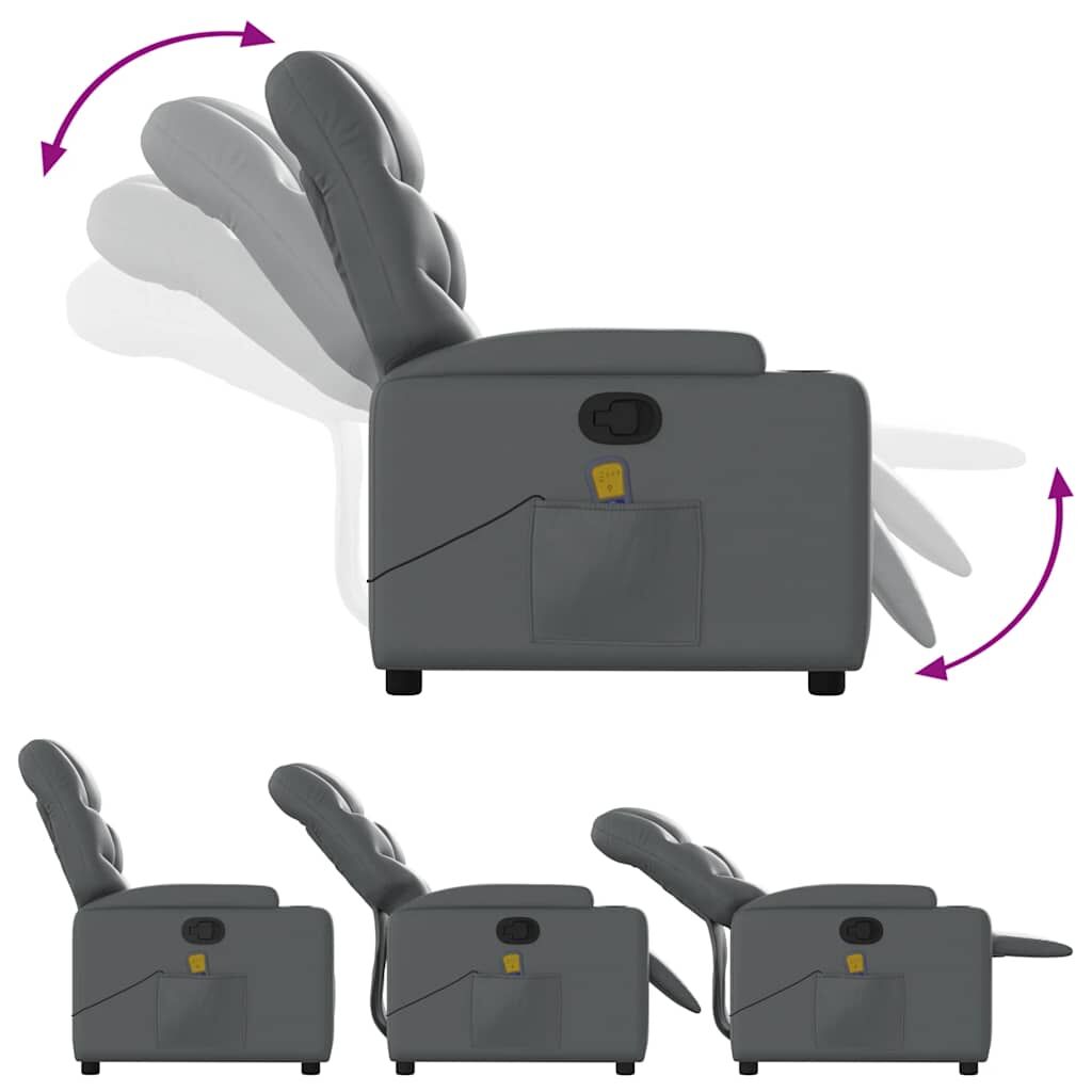 $301.49Sit back and drift away in this highly comfortable massage recliner chair! Manual reclining function: This reclining chair has a handle on the right side. You can manually adjust the footrest and the backrest to any position as per your comfort with a simple pull of the handle. This feature allows for a maximum tilt of 135 degrees. Additionally, the backrest can go quickly back to the original place with an easy pull of the handle.Vibration function: The featured 6 massage points let you experience a better-targeted massage. Additionally, the included hand control allows you to pick different massage programs. The massage function is powered by the USB connector, but the certified 5V USB power source is not included.Comfortable seat experience: The thickly padded seat, backrest, and wide armrests covered in faux leather provide a cosy sensation, making you feel embraced while seated. The faux leather is a highly durable material. It is resistant to stain, making it easy to clean with a damp cloth. The smooth surface also gives a luxurious look and the beauty of real leather.Convenient cup holders and side pocket: This armchair has two convenient cup holders for your drinks and a side pocket for your remote control or keeping your essential items within easy reach.Solid and stable frame: The frame made of wood and metal provides a strong structure and stability. This reclining armchair is comfortable and durable.