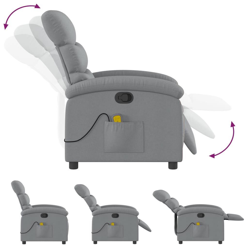 $278.09Sit back and drift away in this highly comfortable massage recliner chair! Manual reclining function: This reclining chair has a handle on the right side. You can manually adjust the footrest and the backrest to any position as per your comfort with a simple pull of the handle. This feature allows for a maximum tilt of 135 degrees. Additionally, the backrest can go quickly back to the original place with an easy pull of the handle.Vibration function: The featured 6 massage points let you experience a better-targeted massage. Additionally, the included hand control allows you to pick different massage programs. The massage function is powered by the USB connector, but the certified 5V USB power source is not included.Comfortable seat experience: The thickly padded seat, backrest, and wide armrests covered in fabric provide a cosy and warm sensation, making you feel embraced while seated. The fabric features a simple and clean look and is breathable and durable.Convenient side pocket: This armchair has a side pocket for your remote control or keeping your essential items within easy reach.Solid and stable frame: The frame made of wood and metal provides a strong structure and stability. This reclining armchair is comfortable and durable.