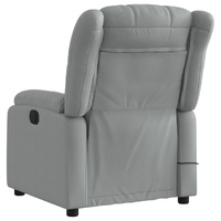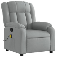 Sit back and drift away in this highly comfortable massage recliner chair! Manual reclining function: This reclining chair has a handle on the right side. You can manually adjust the footrest and the backrest to any position as per your comfort with a simple pull of the handle. This feature allows for a maximum tilt of 135 degrees. Additionally, the backrest can go quickly back to the original place with an easy pull of the handle.Vibration function: The featured 6 massage points let you experience a better-targeted massage. Additionally, the included hand control allows you to pick different massage programs. The massage function is powered by the USB connector, but the certified 5V USB power source is not included.Comfortable seat experience: The thickly padded seat, backrest, and wide armrests covered in fabric provide a cosy and warm sensation, making you feel embraced while seated. The fabric features a simple and clean look and is breathable and durable.Convenient side pocket: This armchair has a side pocket for your remote control or keeping your essential items within easy reach.Solid and stable frame: The frame made of wood and metal provides a strong structure and stability. This reclining armchair is comfortable and durable.