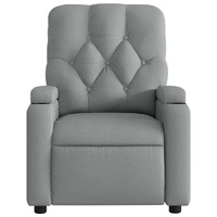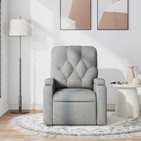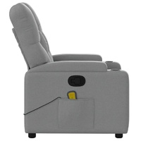 Sit back and drift away in this highly comfortable massage recliner chair! Manual reclining function: This reclining chair has a handle on the right side. You can manually adjust the footrest and the backrest to any position as per your comfort with a simple pull of the handle. This feature allows for a maximum tilt of 135 degrees. Additionally, the backrest can go quickly back to the original place with an easy pull of the handle.Vibration function: The featured 6 massage points let you experience a better-targeted massage. Additionally, the included hand control allows you to pick different massage programs. The massage function is powered by the USB connector, but the certified 5V USB power source is not included.Comfortable seat experience: The thickly padded seat, backrest, and wide armrests covered in fabric provide a cosy and warm sensation, making you feel embraced while seated. The fabric features a simple and clean look and is breathable and durable.Convenient cup holders and side pocket: This armchair has two convenient cup holders for your drinks and a side pocket for your remote control or keeping your essential items within easy reach.Solid and stable frame: The frame made of wood and metal provides a strong structure and stability. This reclining armchair is comfortable and durable.