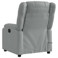 Sit back and drift away in this highly comfortable massage recliner chair! Manual reclining function: This reclining chair has a handle on the right side. You can manually adjust the footrest and the backrest to any position as per your comfort with a simple pull of the handle. This feature allows for a maximum tilt of 135 degrees. Additionally, the backrest can go quickly back to the original place with an easy pull of the handle.Vibration function: The featured 6 massage points let you experience a better-targeted massage. Additionally, the included hand control allows you to pick different massage programs. The massage function is powered by the USB connector, but the certified 5V USB power source is not included.Comfortable seat experience: The thickly padded seat, backrest, and wide armrests covered in fabric provide a cosy and warm sensation, making you feel embraced while seated. The fabric features a simple and clean look and is breathable and durable.Convenient side pocket: This armchair has a side pocket for your remote control or keeping your essential items within easy reach.Solid and stable frame: The frame made of wood and metal provides a strong structure and stability. This reclining armchair is comfortable and durable.