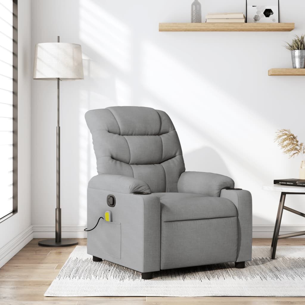 $342.89Sit back and drift away in this highly comfortable massage recliner chair! Manual reclining function: This reclining chair has a handle on the right side. You can manually adjust the footrest and the backrest to any position as per your comfort with a simple pull of the handle. This feature allows for a maximum tilt of 135 degrees. Additionally, the backrest can go quickly back to the original place with an easy pull of the handle.Vibration function: The featured 6 massage points let you experience a better-targeted massage. Additionally, the included hand control allows you to pick different massage programs. The massage function is powered by the USB connector, but the certified 5V USB power source is not included.Comfortable seat experience: The thickly padded seat, backrest, and wide armrests covered in fabric provide a cosy and warm sensation, making you feel embraced while seated. The fabric features a simple and clean look and is breathable and durable.Convenient cup holders and side pocket: This armchair has two convenient cup holders for your drinks and a side pocket for your remote control or keeping your essential items within easy reach.Solid and stable frame: The frame made of wood and metal provides a strong structure and stability. This reclining armchair is comfortable and durable.