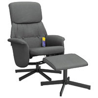 $206.99Sit back and drift away in this highly comfortable massage recliner chair! Vibration function: The featured 6 massage points let you experience a better-targeted massage. Additionally, the included hand control allows you to pick different massage programs. The massage function is powered by the USB connector that requires a certified 5V USB power source (not included).Manual reclining function: The massage chair is specially designed with a reclining function so that you can adjust the backrest as per your comfort. The backrest can be tilted from 105 to 125 degrees.360-degree swivel: The massage recliner can be swivelled freely in 360 degrees, giving it extra flexibility.Comfortable seat experience: The thickly padded seat, backrest, and wide armrests covered in fabric provide a cosy and warm sensation, making you feel embraced while seated. The extra stool is suitable for resting your feet when you lie on the recliner, making this chair a comfortable seat for any occasion.Solid and stable frame: The frame made of plywood and metal provides a strong structure. This massage reclining chair is comfortable and durable. Good to know:To save space, some parts or cushions are packed inside the furniture—check zipped compartments or beneath the seat cover for any hidden components.