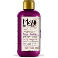 Maui moisture heal and hydrate + shea butter conditioner is made with 100% aloe juice as first ingredient. Vegan friendly maui heal and hydrate shea butter conditioner perfect size for travel at 100ml. Maui Moisture is a unique blend of aloe vera juice infused with pure coconut water, unlike some other conditioners that start with deionized water as their first ingredient listed. Moisturised strands, mended split ends and a healthy glow with every use. Creamy shea butter is whipped into this hydrating conditioner blend along with rich coconut and macadamia oils to help deeply quench and soften strands to get hair back to looking healthy. No Mineral Oil. No Silicones. No Parabens. No Gluten. No SLS. No Sulfated Surfactants. No Synthetic Dye. No Ales.