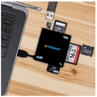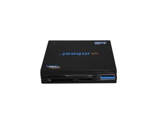 mbeat USB 3.0 High Speed Card Reader (SD, CF, XD and MS) designed for users that need a fast and efficient way to transfer large files such as high-resolution images or HD videos. It comes with 8 card slots to take SD, CF, XD and MS cards. It supports high capacity SDXC memory card up to 2TB and CF card in UDMA mode. The unit is compact and sleek, making it great for day-to-day use. The hidden USB data cable design also means that a separate USB cable is no longer needed. Additional features include dual slot SD/MicroSD card-to-card copy and no card adaptor request for small cards like MicroSD or SONY M2. It is USB 2.0 backward compatible and it works with MAC OS 10.4 and above.