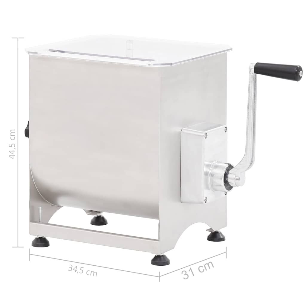 $402.64With our easy-to-operate manual meat mixer, you can add your favourite seasonings and spices to your sausage, jerky, and other ground meats by creating your own personalized meat blends at ease. It is perfect for home and professional use. This powerful meat blender can hold meat of up to 44 pounds and it is equipped with a blade shaft that fold the meat into itself to ensure seasoning blends thoroughly and evenly throughout your meat mixture. Large crank handle and clear plastic lid allow you to watch the meat mix while keeping your hands clean and safe from the blades. Made of food-grade stainless steel, the meat blender has a robust and durable construction. Additionally, it is easy to attach to an automatic meat mincer thanks to the gear box, which makes heavy loads possible and enables easy handling even with a full mixer.