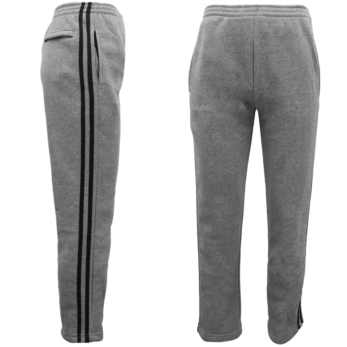 Men's Fleece Casual Sports Track Pants w Zip Pocket Striped Sweat Trousers S-6XL, Grey