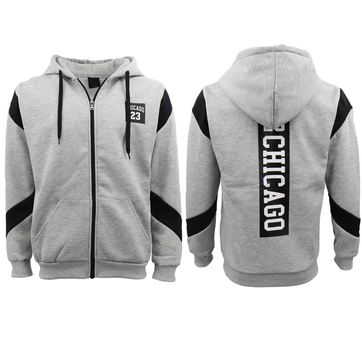 Men's Fleece Zip Up Hoodie Shirt Chicago Bulls 23 Michael Jordan Sweat Jacket, Light Grey