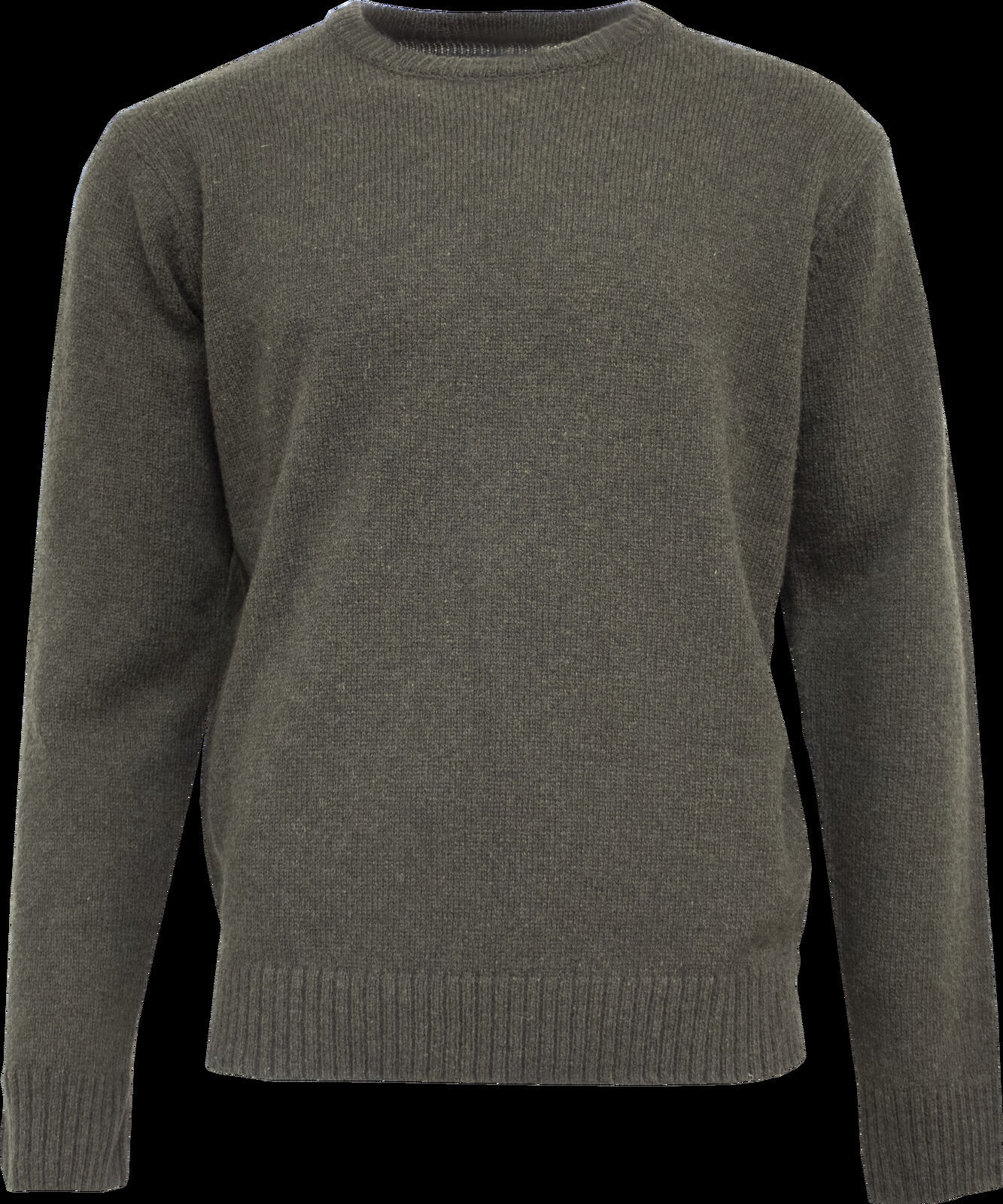 Mens Shetland Wool Crew Round Neck Knit Jumper Pullover Sweater Knitted - Olive
