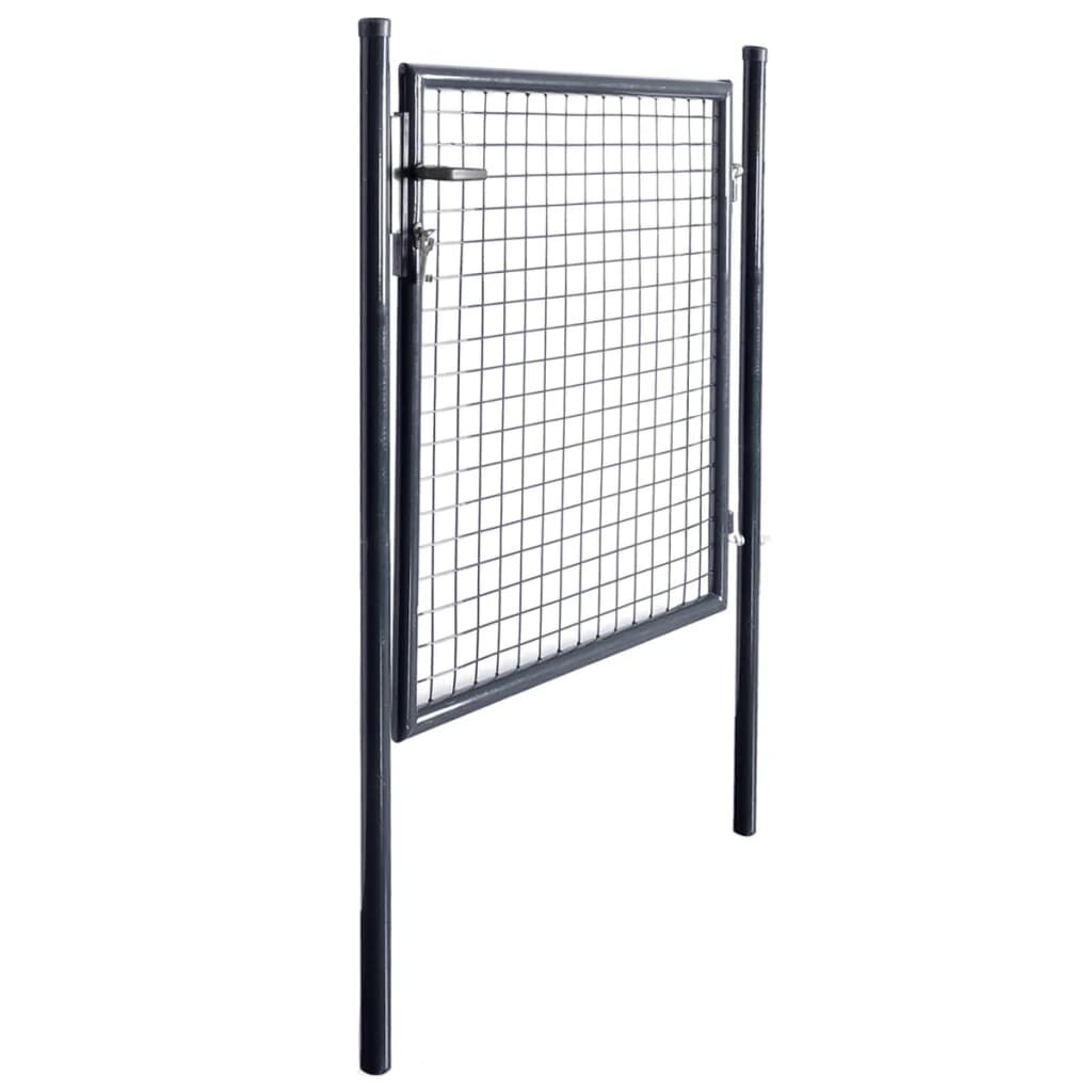 $143.99Featuring a high level of stability and durability, this fence gate can be used as a practical, modern entryway for your garden, patio and terrace. The garden gate is perfect in workmanship and manufactured from galvanised steel with a powder-coated finish, which is rust resistant and forms a sturdy construction. It has two side posts with bolt hinges for easy installation. Delivery also includes three keys.