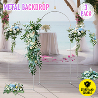 This 3 Pack Metal Arch Stand Set offers a versatile and elegant choice for enhancing wedding and special event decor. This set includes three arches 4 FT, 5 FT, and 6 FT - allowing to create stunning visual displays tailored to different spatial needs.
