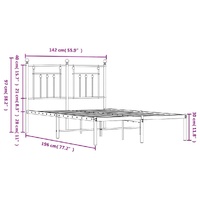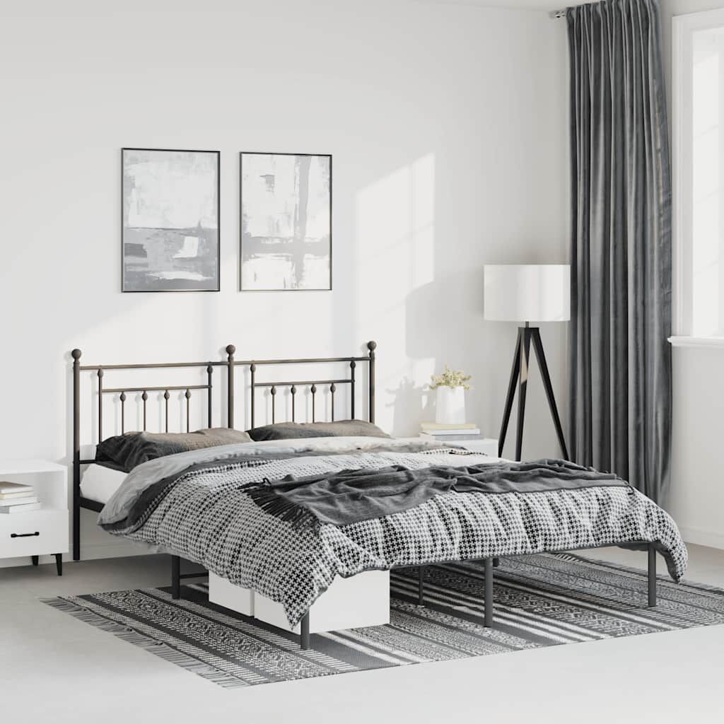 Metal Bed Frame without Mattress with Headboard Black 135x190 cm