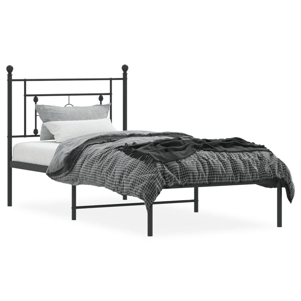 Metal Bed Frame without Mattress with Headboard Black 90x190 cm