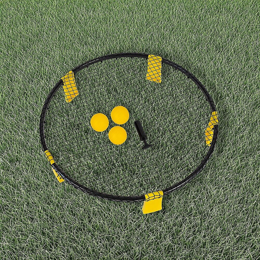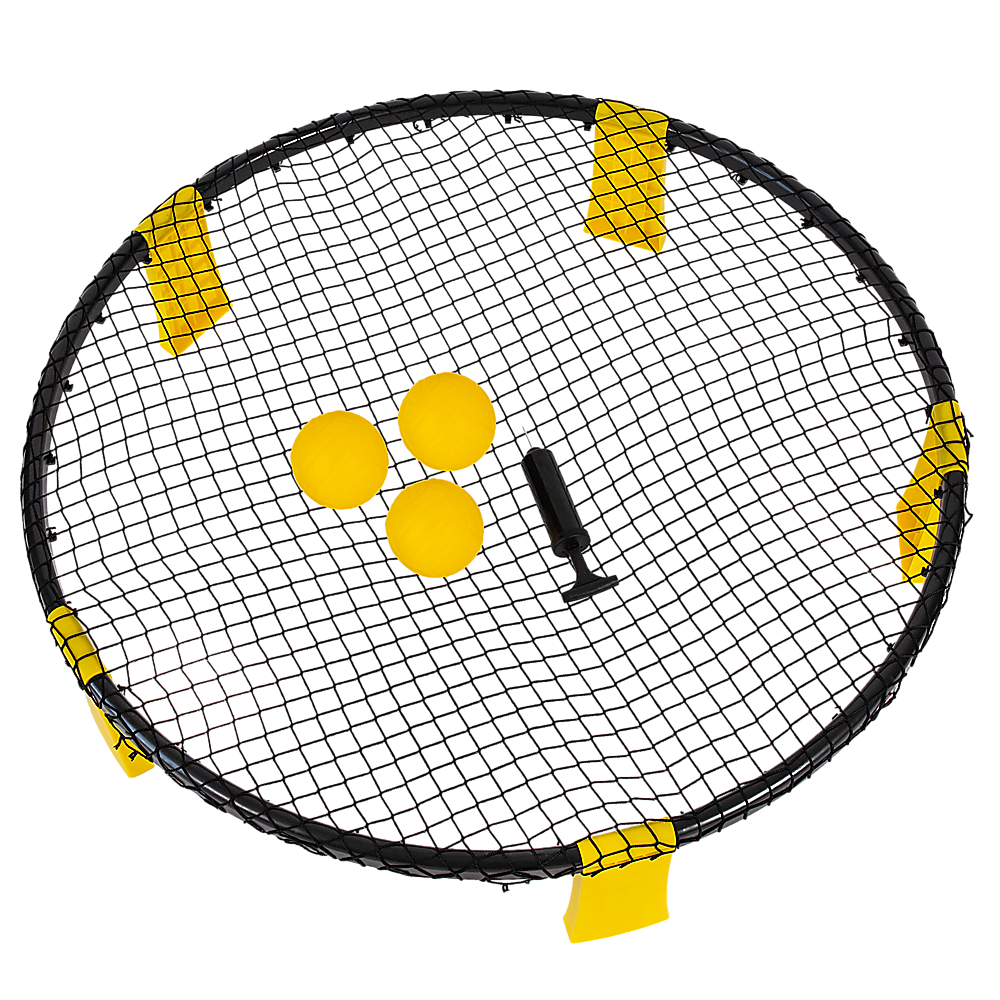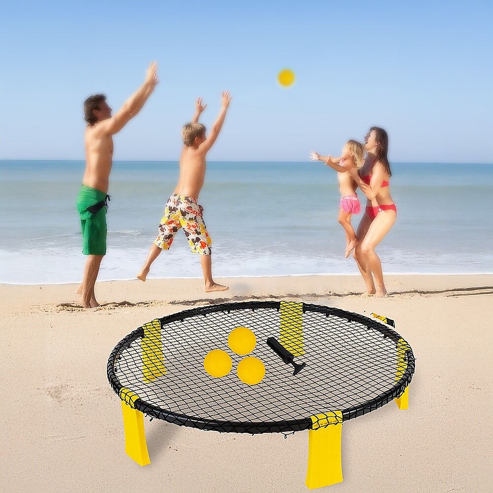 It's a four-player game with each player trying to bounce off the ball through the net. It's another version of volleyball - that you don't need a designated court for.