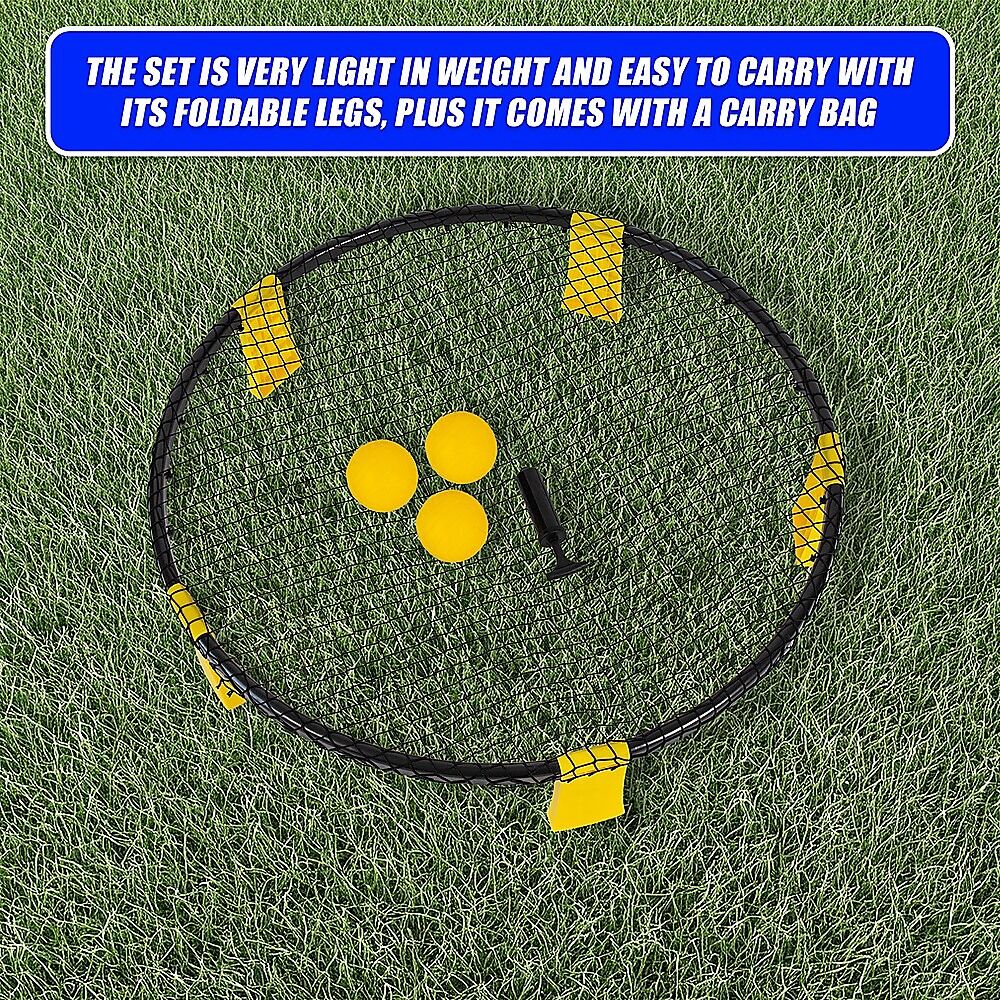 The net is made of nylon material and the ball is made of sturdy PVC. The set is very light in weight and easy to carry with its foldable legs, plus it comes with a carry bag. So you can literally enjoy the game anywhere!