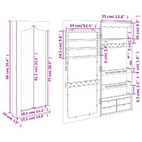 $97.60Keep your jewellery and perfumes discreetly and elegantly stored away with this stylish mirror jewellery cabinet! Durable material: The engineered wood is of exceptional quality with smooth surface and also features strength, stability and resistance to moisture. Made of engineered wood, the jewellery cabinet is easy to clean with a damp cloth. Ample storage space: The storage mirror offers 4 drawers and plenty of hooks, hangers and shelves to keep your jewellery neatly organised and within reach.Practical mirror: With a practical mirror, this jewellery organiser is great for getting ready and applying make-up.Considerate protection: The jewellery storage has a lockable door and comes with 2 keys to ensure the safety of your items. Also, the soft fabric cover inside not only adds elegance but also protects your beloved jewellery from scratches.Space-saving design: Hang the mirror jewellery box over the door with the included hooks or mount it on the wall to save floor space. Good to know:Screws for wall mounting are included.