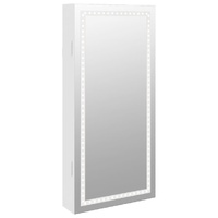 $95.74Keep your jewellery and perfumes discreetly and elegantly stored away with this stylish mirror jewellery cabinet with LED lights! Durable material: The engineered wood is of exceptional quality with smooth surface and also features strength, stability and resistance to moisture. Made of engineered wood, the jewellery cabinet is easy to clean with a damp cloth.Ample storage space: The storage mirror offers plenty of hooks, hangers and shelves to keep your jewellery neatly organised and within reach.Practical mirror: With a practical mirror, this jewellery organiser is great for getting ready and applying make-up.Considerate protection: The jewellery storage has a lockable door and comes with 2 keys to ensure the safety of your items. Also, the soft fabric cover inside not only adds elegance but also protects your beloved jewellery from scratches.Bright LED lights: The mirror is surrounded by LED lights that are controlled by on/off switch, which not only gives you a movie star feeling but also adds an extra touch to your room décor.Space-saving design: Hang the mirror jewellery box over the door with the included hooks or mount it on the wall to save floor space. Good to know:Screws for wall mounting are included.3 AA batteries are required but not included in the delivery.