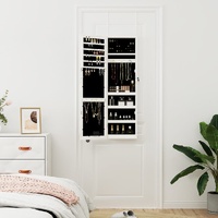 $142.19Keep your jewellery and perfumes discreetly and elegantly stored away with this stylish mirror jewellery cabinet with LED lights! Durable material: The engineered wood is of exceptional quality with smooth surface and also features strength, stability and resistance to moisture. Made of engineered wood, the jewellery cabinet is easy to clean with a damp cloth. Ample storage space: The storage mirror offers plenty of hooks, hangers and shelves to keep your jewellery neatly organised and within reach.Practical mirror: With a full-length mirror, this jewellery organiser is great for getting ready and applying make-up.Considerate protection: The jewellery storage has a lockable door and comes with 2 keys to ensure the safety of your items. Also, the soft fabric cover inside not only adds elegance but also protects your beloved jewellery from scratches.Bright LED lights: The mirror is surrounded by LED lights that are controlled by on/off switch, which not only gives you a movie star feeling but also adds an extra touch to your room décor.Space-saving design: Hang the mirror jewellery box over the door with the included hooks or mount it on the wall to save floor space. Good to know:Screws for wall mounting are included.3 AA batteries are required but not included in the delivery.