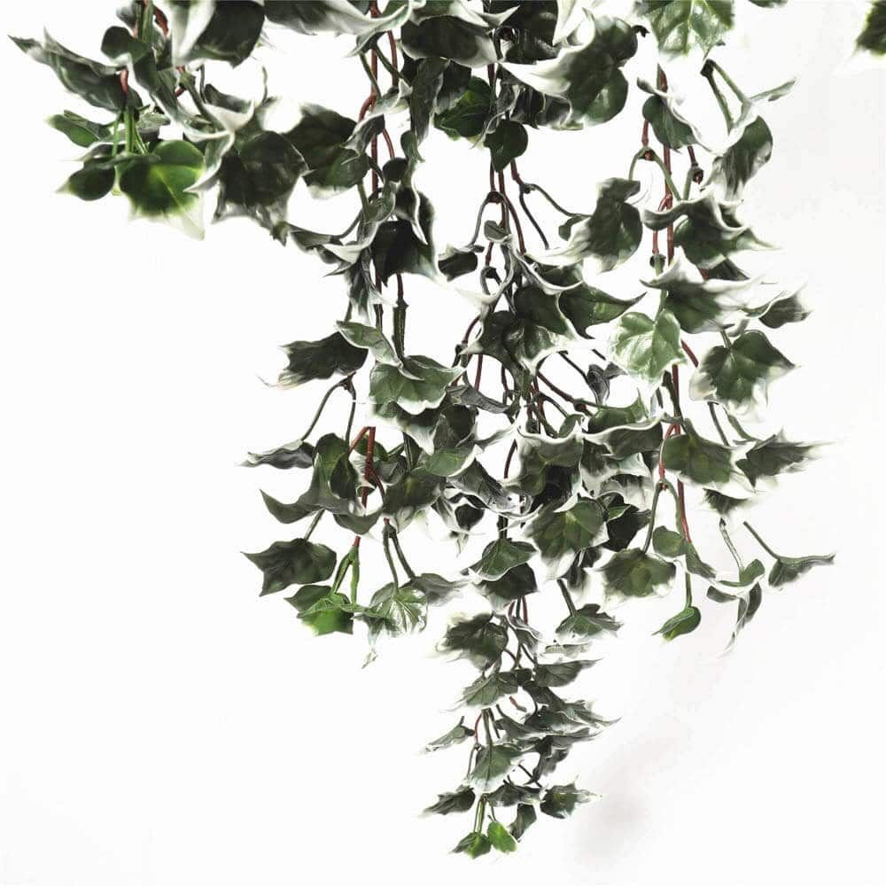 Realistic Design with Cascading Beauty: Experience the stunning visual texture of this lifelike mixed green and white-tipped ivy bush.