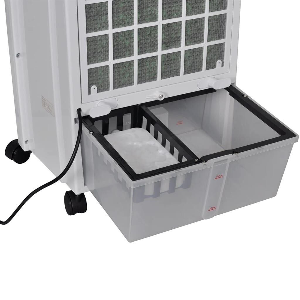 $181.30This mobile air cooler is an efficient portable fan that can inexpensively lower the air temperature and improve the indoor air quality of medium-sized rooms. This mobile air cooler combines ventilating and air cooling functions and delivers a stream of cool air to the room. The cooling effect is achieved by the evaporation of water or ice from the 8-litre water tank. It differs from conventional fans as it is designed to humidify and purify the air in order to improve the indoor environment.