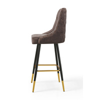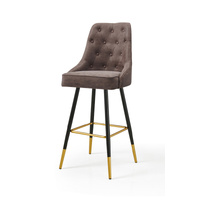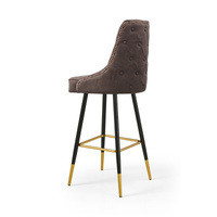 This stud bar stool provides comfortable seating for your kitchen bar or island with its beautiful details including buttoned backrest, studs around the edge and gold-tone tipped legs.