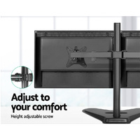 $36.89Add some extended mobility to your monitor with our Artiss Fully Adjustable Double Monitor Arm. With it, you can extend both arms up to 43cm to set your preferred viewing position and retract it with ease. Height adjustments can be easily done by twisting the height adjustment screw. It also allows you to swivel your monitor 180, rotate it 360 or tilt it up to 45 and set in either landscape or portrait format. Using the detachable VESA mount, you can mount any monitor size of up to 32"* with a maximum weight capacity of 9kg on each arm. Plus, you can also fine tune the monitors' alignment with the VESA plate height adjustment. Other great features include a freestanding V-shaped base that does not need any drilling or clamping, cable loops for neat and tidy cabling and a tools holder for allen keys. Not least, made from heavy-duty steel, the monitor arms are designed to stand up to longlasting use without missing a beat. All the necessary mounting hardware and an assembly manual are included in the package for a hassle-free set up.