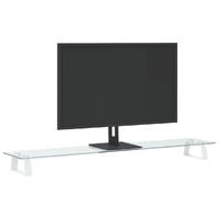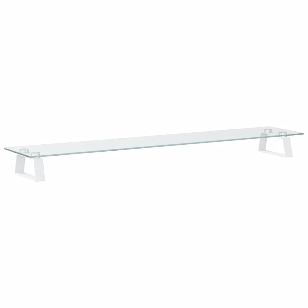 $55.75This practical monitor stand with a minimalist design will add a modern touch to your living space. Durable material: The computer stand is made of tempered glass and metal, making it exceedingly sturdy and stable.Ergonomic design: Raise your monitor up to eye level for a comfortable ergonomic viewing experience, relieving the strain on the neck, shoulder, and back.Additional storage: The storage space underneath this monitor riser can accommodate your keyboard, DVD player, gaming console, streaming device, receivers, media carriers, notebooks, pens, and similar items, which can better organise the desk to increase your efficiency.Rounded corner design: The smooth rounded corners allow you not to worry about being hurt by the screen stand during use.