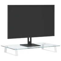 $41.80This practical monitor stand with a minimalist design will add a modern touch to your living space. Durable material: The computer stand is made of tempered glass and metal, making it exceedingly sturdy and stable.Ergonomic design: Raise your monitor up to eye level for a comfortable ergonomic viewing experience, relieving the strain on the neck, shoulder, and back.Additional storage: The storage space underneath this monitor riser can accommodate your keyboard, DVD player, gaming console, streaming device, receivers, media carriers, notebooks, pens, and similar items, which can better organise the desk to increase your efficiency.Rounded corner design: The smooth rounded corners allow you not to worry about being hurt by the screen stand during use.