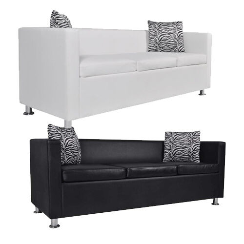 NOW $381.29This 3-seater sofa, made from quality artificial leather, provides optimum seating comfort. It is a great choice to bring in an air of class into your home. This 3-seater sofa takes up little space and offers simple lines to decorate any room whether classic or modern. It features a wide seating area and thickly padded cushions for the ultimate seating comfort. The sofa is upholstered with high-quality and durable artificial leather that is hardwearing and easy to clean. Its simple design is elevated by the excellent stitching. The sofa is well constructed with sturdy feet that give long lasting durability. Delivery includes 1 x 3-seater sofa and 2 x loose pillows.