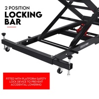 This premium model has a 1895mm long platform table and features a 735mm approach ramp. It also has a 45 degree front wheel clamp along with the 4 tie-down points to make sure that unwanted moving of the bike is prevented.