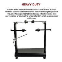 If you're an avid motorcycle rider who also enjoys a smooth ride than you know the importance of having a Motorcycle Wheel Balancing Stand! Being able to balance a bike wheel yourself is a great knowledge to have; it saves time and money. Now you can get the most accurate balance possible with this wheel balancer. The heavy duty carbon steel material finished with a durable and scratch resistant powder-coated finish will ensure the longest possible life, and having detachable side supports allows you the convenience of storing the wheel stand in small spaces when not in use. The fully adjustable centre pins and truing arm provide the most accuracy during the truing process, and the included alignment tube ensures proper installation by aligning the pins perfectly together. Make sure you're riding as smooth and balanced as possible and order your Motorcycle Wheel Balancing Stand today!