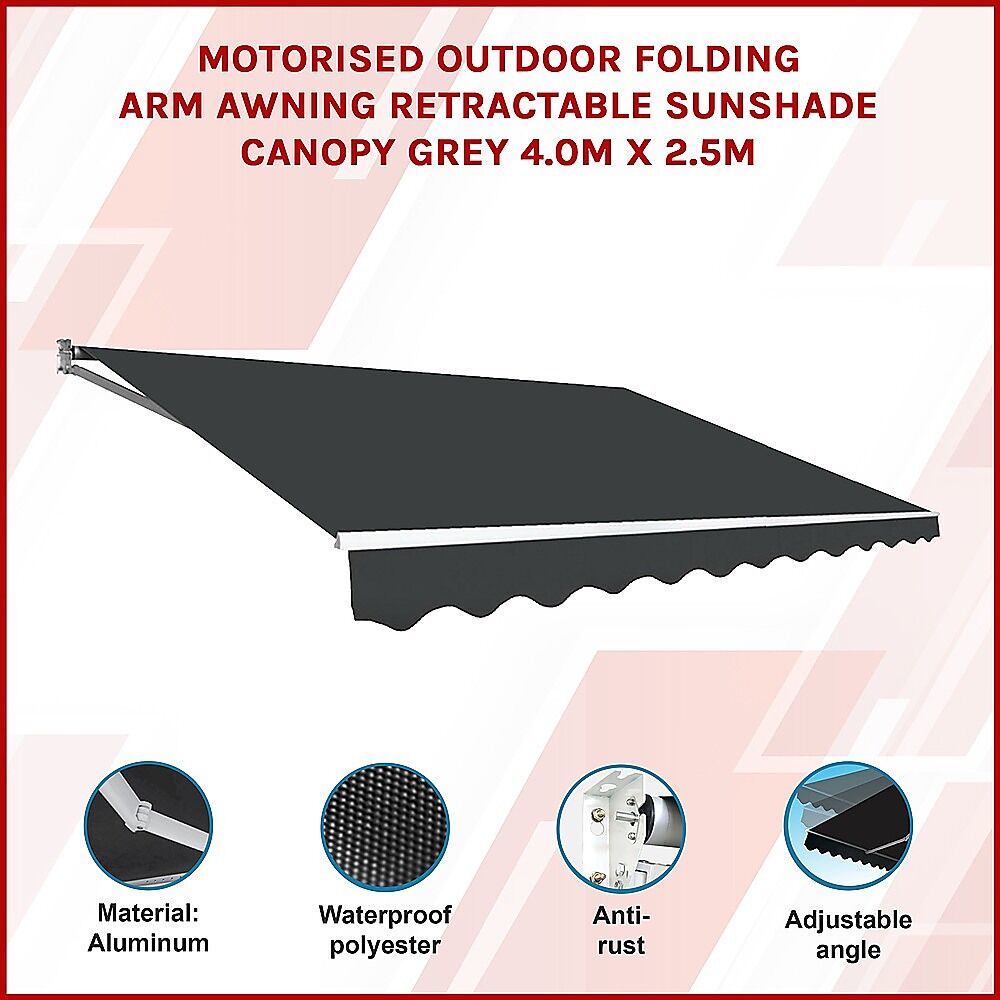 $718.19With summer just around the corner, it's time to start preparing your home to handle scorching heat and the sun's incessant rays. Barlioche's 4.0 m x 2.5m motorised folding arm outdoor retractable awning is just the thing to protect you from the hot summer sun.