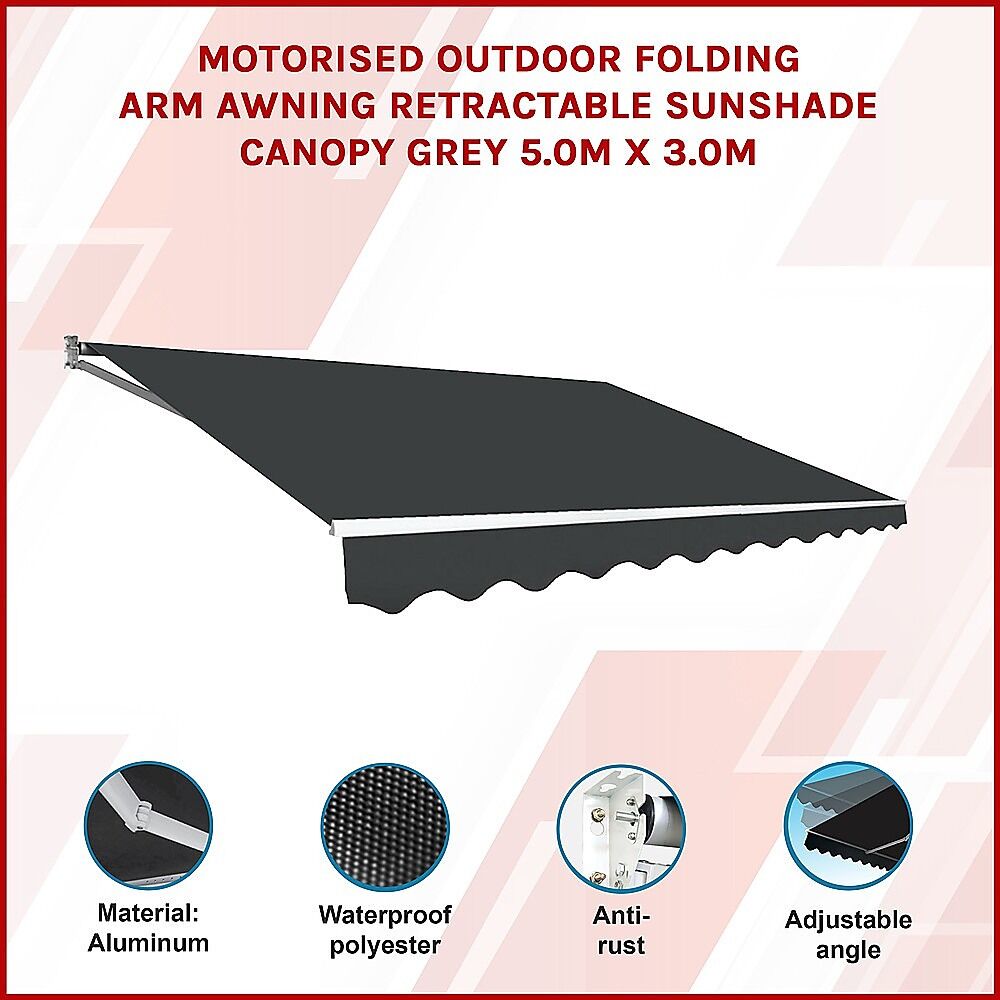 NOW $955.06With summer just around the corner, it's time to start preparing your home to handle scorching heat and the sun's incessant rays. Bariloche's 5.0 m x 3.0 m motorised folding arm outdoor retractable awning is just the thing to protect you from the hot summer sun.