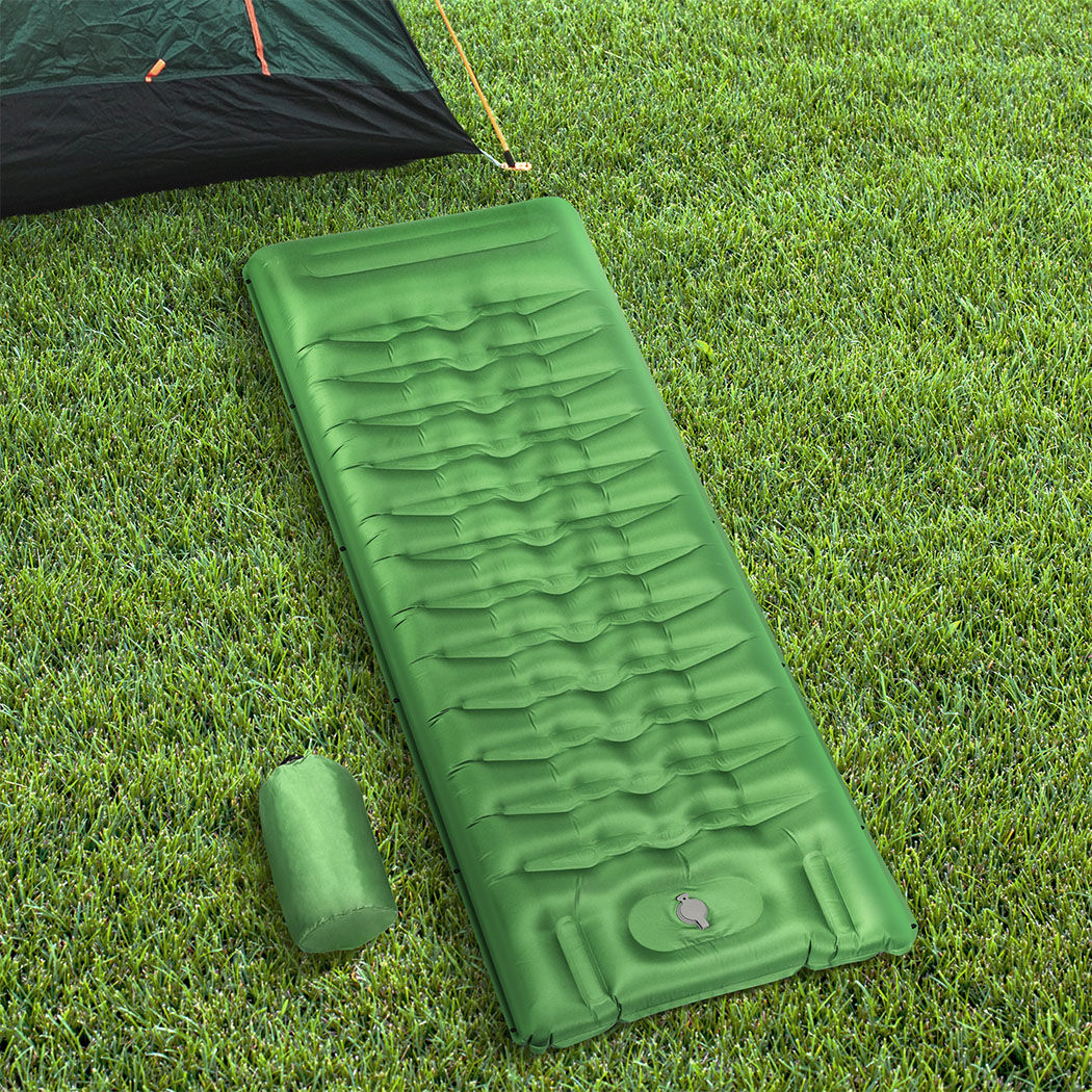 This camping air mattress offers the perfect blend of convenience and comfort, equipped with an innovative foot pump for quick and easy inflation. Its compact and lightweight design allows it to fit snugly in your backpack or luggage, making it ideal for hiking, road trips, or camping adventures. Once inflated, it provides excellent support and comfort, giving you the feel of a home mattress for a good night’s sleep in the great outdoors. The ergonomic design ensures even distribution of body pressure, reducing back and hip fatigue. The anti-slip bottom keeps the mattress stable, preventing any movement while you sleep. Crafted from durable, easy-to-clean materials, this air mattress is built to handle the rigours of outdoor use while maintaining its quality. It inflates and deflates quickly, offering a hassle-free solution for comfortable outdoor sleep.