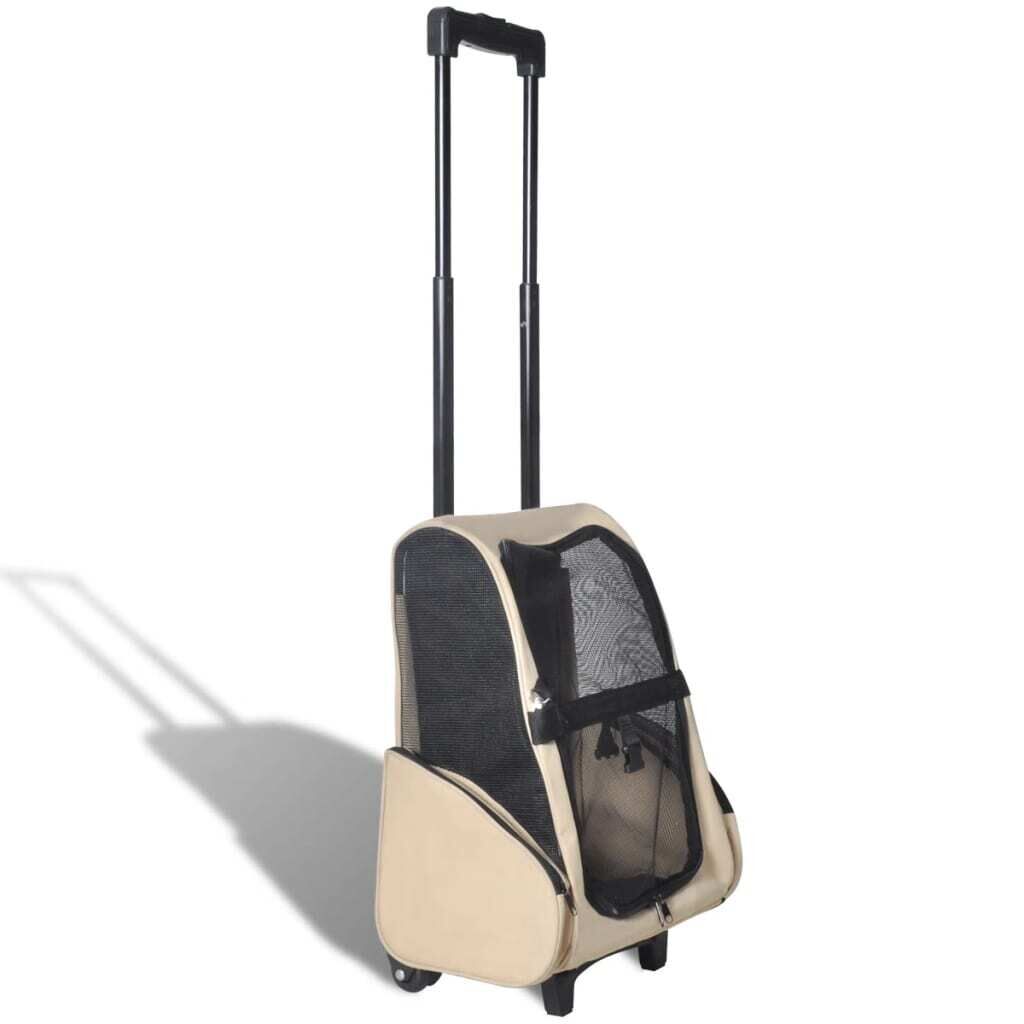 $66.59This pet trolley is lightweight and ventilated. It is designed for small pets like cats, dogs, rabbits, etc. Featuring an all-in-one design, this collapsible trolley can also be used as a pet backpack and a pet hand bag. It will really be a perfect choice for pet owners. This pet trolley is light and well-ventilated, with strong mesh windows on three sides, which makes it a comfortable shelter for your furry friend. The zippered doors can be rolled up or down, which makes it easy for your pet to get in and out. This pet trolley also boasts 2 zippered storage pockets for carrying small items like toys, treats, etc. Made of high-quality metal and fabric, this pet trolley is very durable.