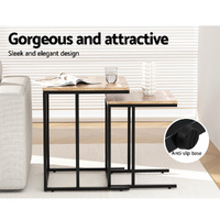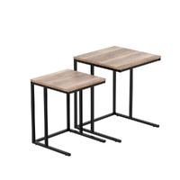 $64.59With its industrial-inspired design, our 2-piece Artiss Nesting Side Table is unlike your by-the-numbers side tables. It consists of two tables of different sizes so that depending on your needs, you can use it as two separate side tables or neatly nest the smaller under the larger to form a single table and save space. The sleek, powder-coated steel legs blend perfectly with the beautiful rectangular natural woodgrain top for a rustic ensemble that will sit well in any room and with any d�cor. And the thick tabletop is chunky and strong for all intents and purposes. Better still, the C-shape profile allows the nesting side table to be brought up close and slide into other furniture pieces without any encumbrances or hassles. Made with sturdy construction, the nesting side table is also fitted with anti-scratch floor protectors to keep your floors in pristine condition with every use.