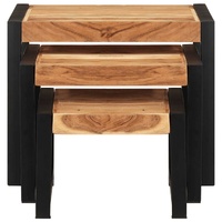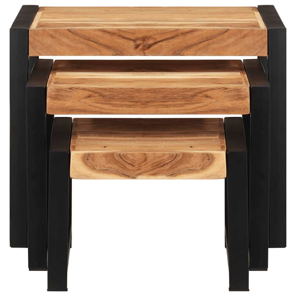 $213.89These simplistic wooden nesting tables are trendy yet practical, truly making them focal points of your room. This vintage-style set of 3 tables is made of solid acacia and rubberwood. These tables are a timeless addition to your home. The tables are very steady and durable with their strong steel frame. Being stackable, these tables save a lot of space when not in use. The craftsmanship adds spectacular retro style to these tables. Every step of the process is carried out with the highest care, be it polishing, painting or lacquering. Important note: Colours vary from piece to piece, making each of tables unique. The delivery is random, ensuring the exclusivity and individuality of your product.