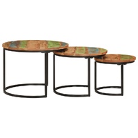 $151.54These nesting tables combine classic design with a practical and simple look, making them a valuable and stylish addition to your living space. Durable material: Solid reclaimed wood consists of reused timbers such as teak, mango wood, pinewood, and beech. These materials are recycled from old buildings such as factories, sheds, and boats. As every piece is handmade, colours will vary for each product.Nesting design: Thanks to the difference in size, these nesting coffee tables can not only meet your multiple needs but also provide extra space and easy storage when the smaller tables are hidden under the bigger ones.Stable tabletop: The sturdy tabletop of the nesting side table is ideal for resting your drinks or any other necessities you need close at hand.Versatile function: These nesting stands are versatile! Any one of them can be used as a nightstand in the bedroom, a side table or a couch table in the living room and office. Good to know:Colours and grains vary per furniture item, making each piece unique. The delivery is random, ensuring the exclusivity and individuality of your product.