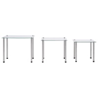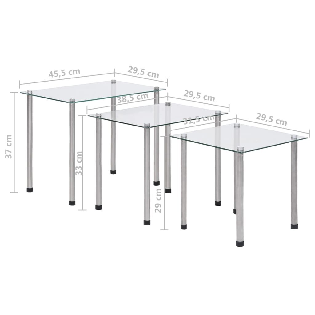 $77.18Instantly add an impressive modern touch to your living space with these contemporary and practical nesting tables! Made of thick tempered glass and stainless steel legs, this set of 3 nesting tables is exceedingly sturdy and safe. The tabletop can accommodate books, magazines, fruit baskets or other small items you'd like to keep within reach. The smooth surface is easy to clean with only a damp cloth. You can stagger or separate the tables to meet your multiple needs, and nest them together to save space when not in use.